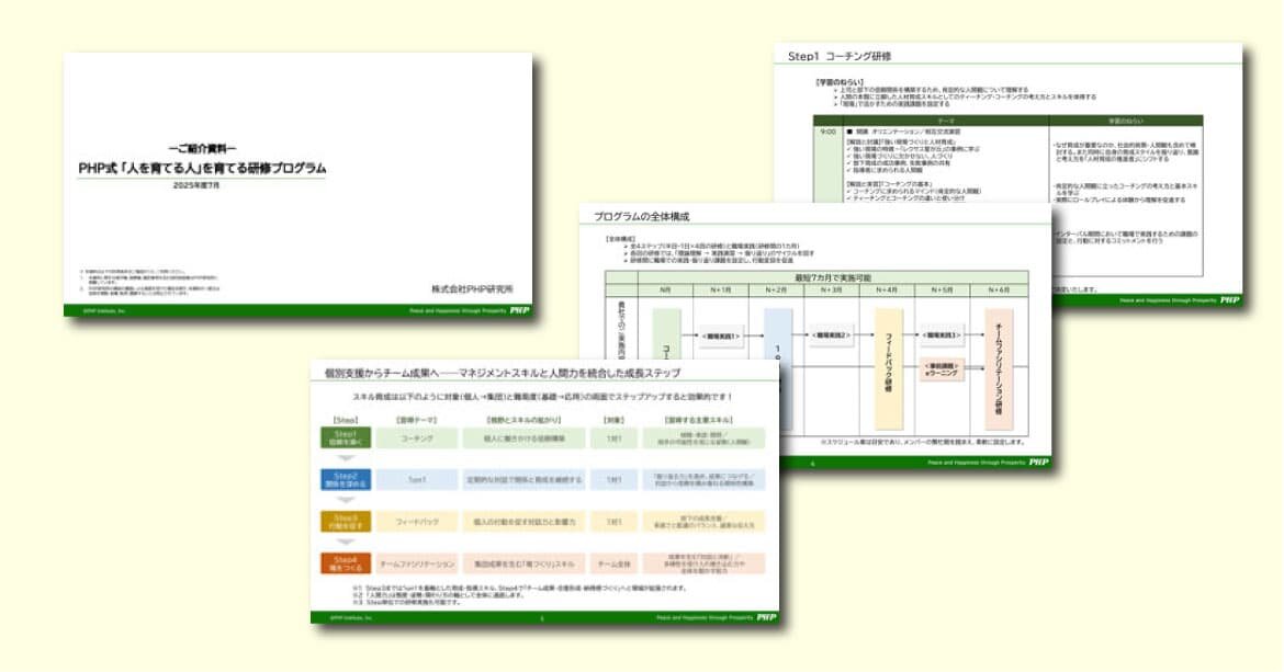 PHP研究所では「人間力」を高めるリーダー向け研修プログラムをご提案しています。詳しい内容や事例をまとめた資料(PDF)をご用意しました。無料でダウンロードできますので、ぜひ貴社の人材育成にお役立てください。